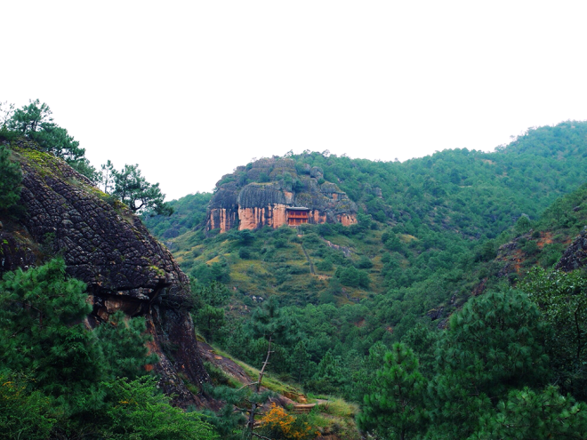 山壁上的石雕很酷,廟是後來才建上去的,