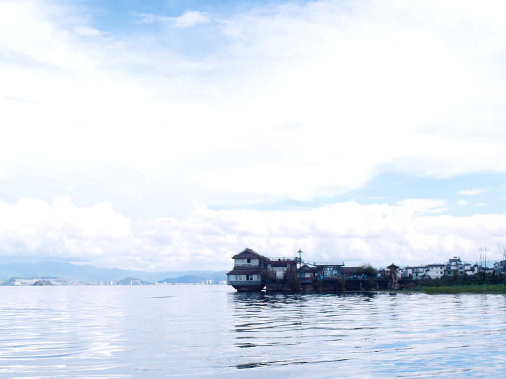 往回看是洱海,往上看是蒼山,蒼山起霧很漂亮,但洱海就沒甚麼特別的感覺。